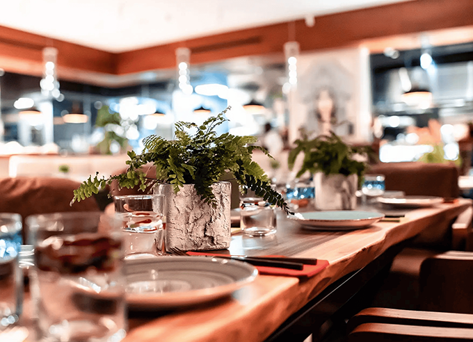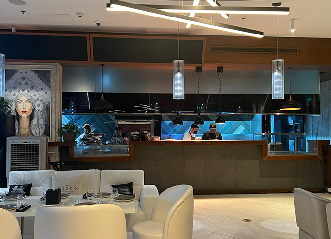 Functional aspects like acoustics, HVAC concealment, and ergonomic seating were seamlessly blended with aesthetic goals. The restrooms were fitted with elegant HPL cubicles and premium fixtures. The kitchen back-of-house area was optimized with durable and hygienic surfaces to support efficient operations. Every corner of the space was crafted to reflect exclusivity and comfort.